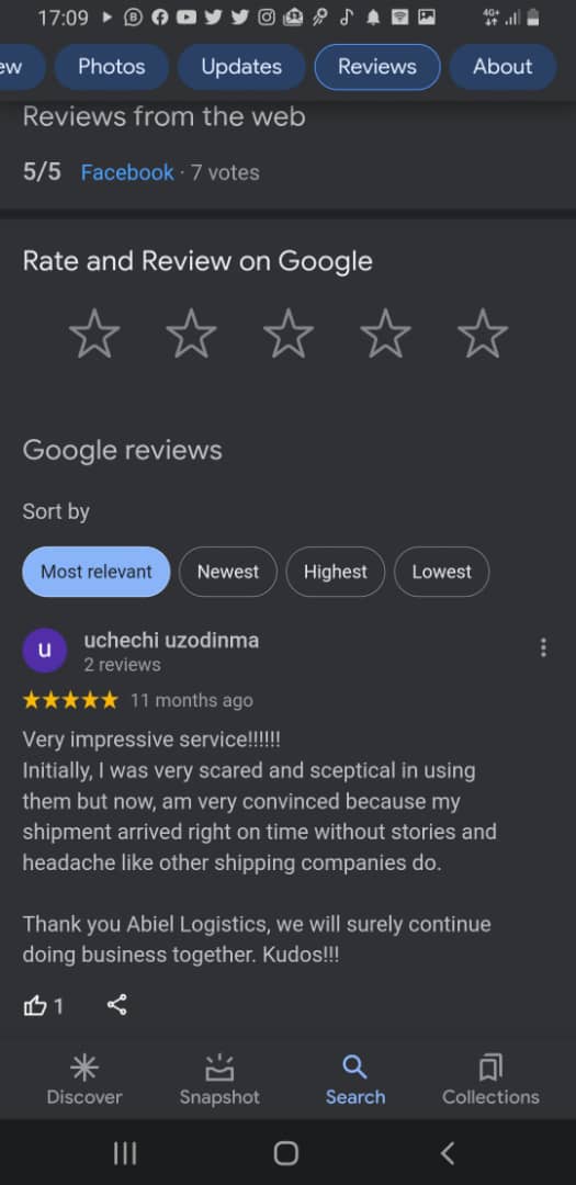 Very impressive service!!!!! Initially, I was very scared and skeptical in using them but now, am very convinced because my shipment arrived right on time without stories and headaches...